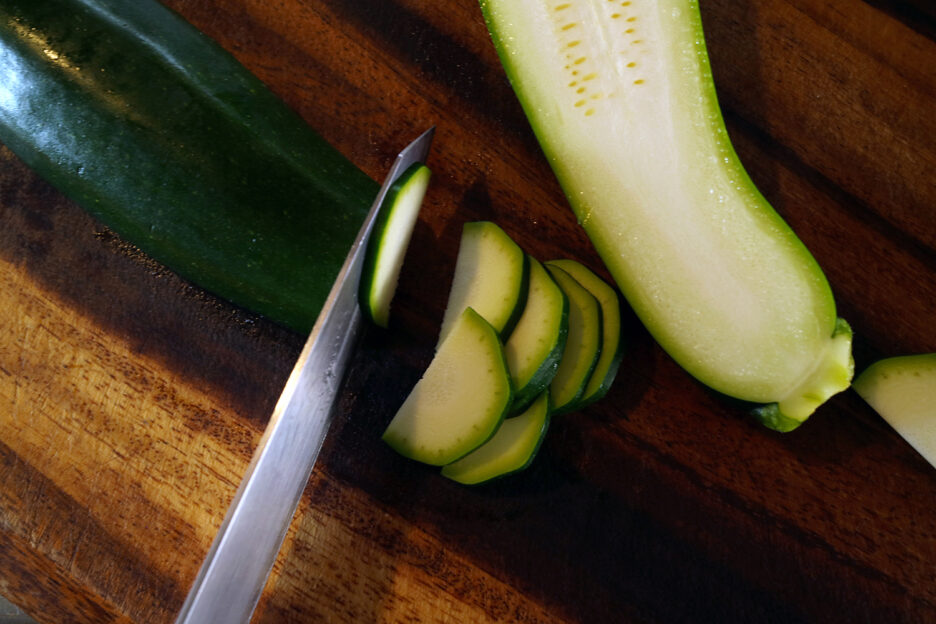 今年は11月でも気温が高いせいか、ナスよりも収穫時期が伸びつつあるズッキーニを使ったレシピです。