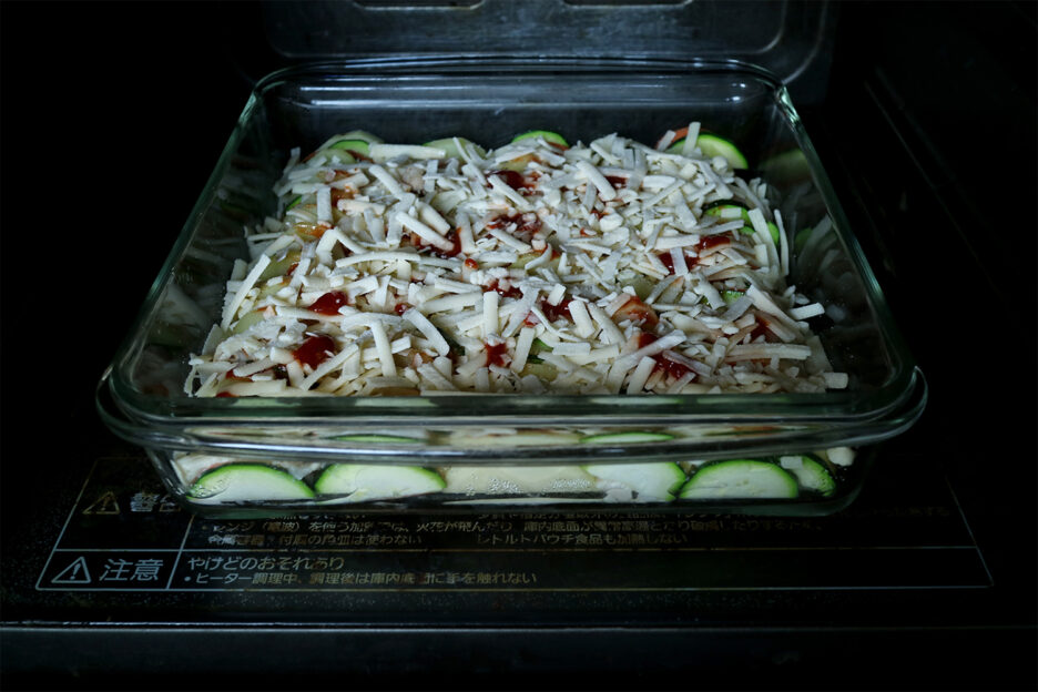 グリルで、水分が多少軽くなりますが、チーズをのせることで、適度に残った状態になります。カリッカリのチーズも美味しいですが、あまり長く火を入れると、硬くなりすぎるかもしれません。