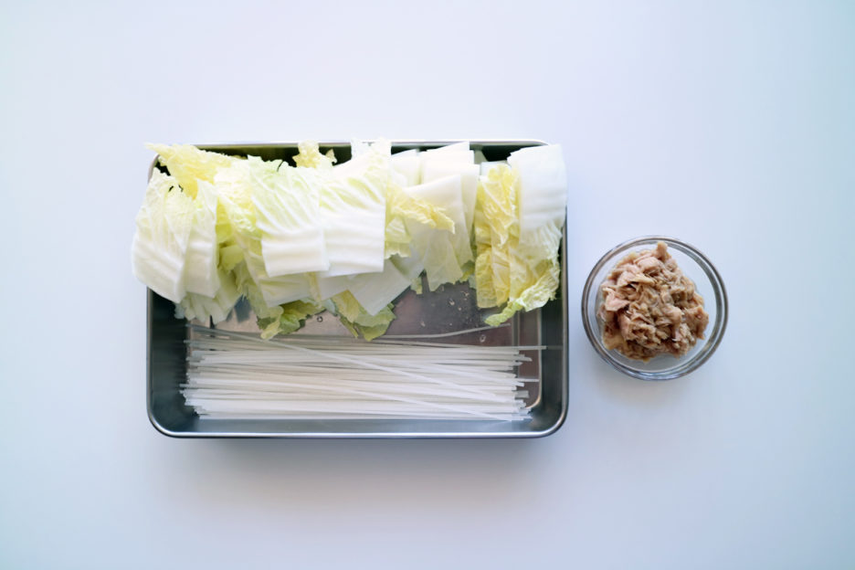にんにくとごま油の香りが食欲をそそるツナでさっぱりとした中華風味の白菜の煮込みです。白菜のシャキシャキ感も残しつつ、ご飯にのせていただくも良し、酒のあてにいただくのも良しです。