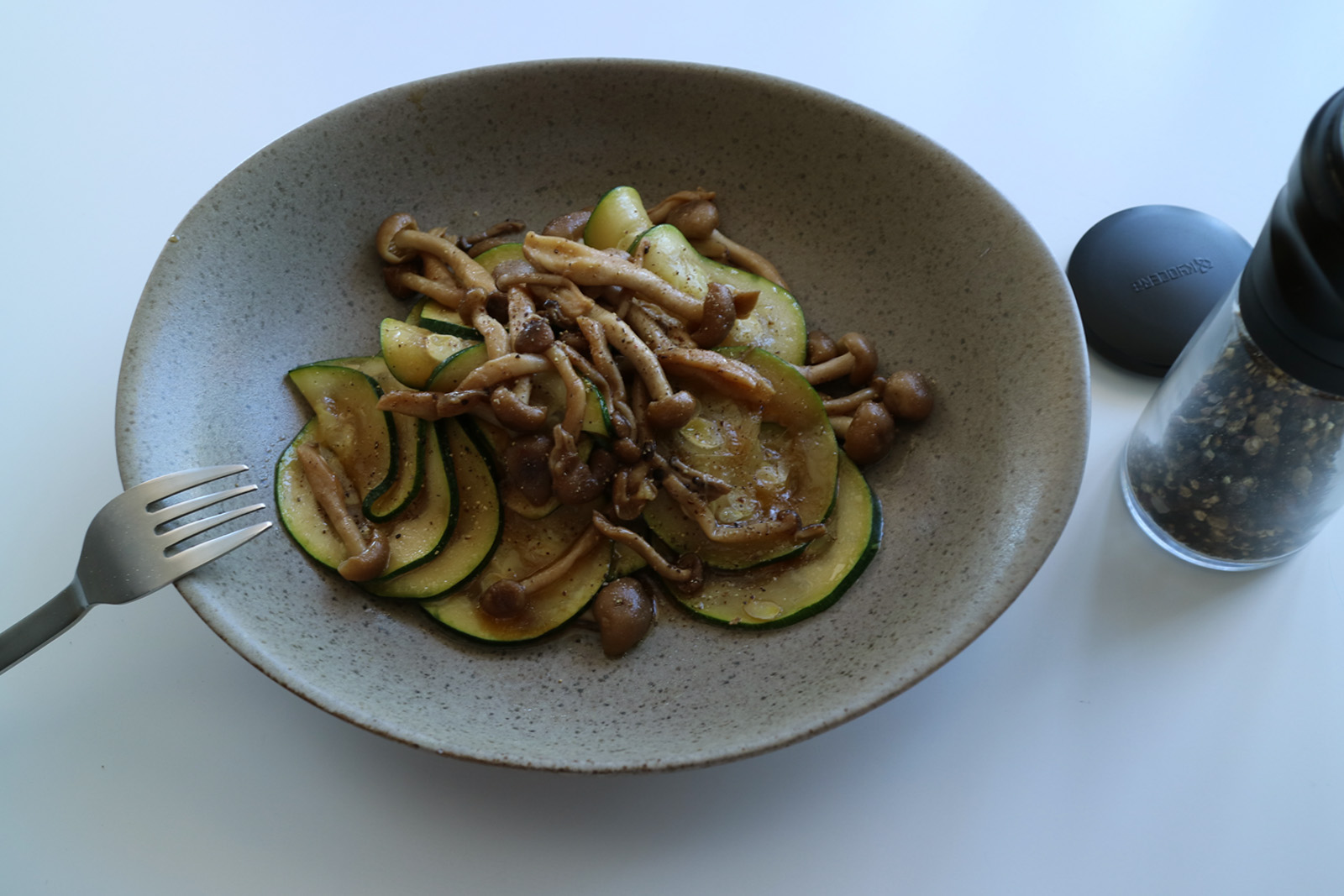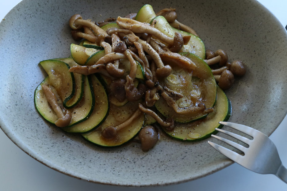 ズッキーニとしめじの旨味を生かし、ささっとシンプルに味付けてビールに、またワインに合うガッツリ、はっきりとした一品に。