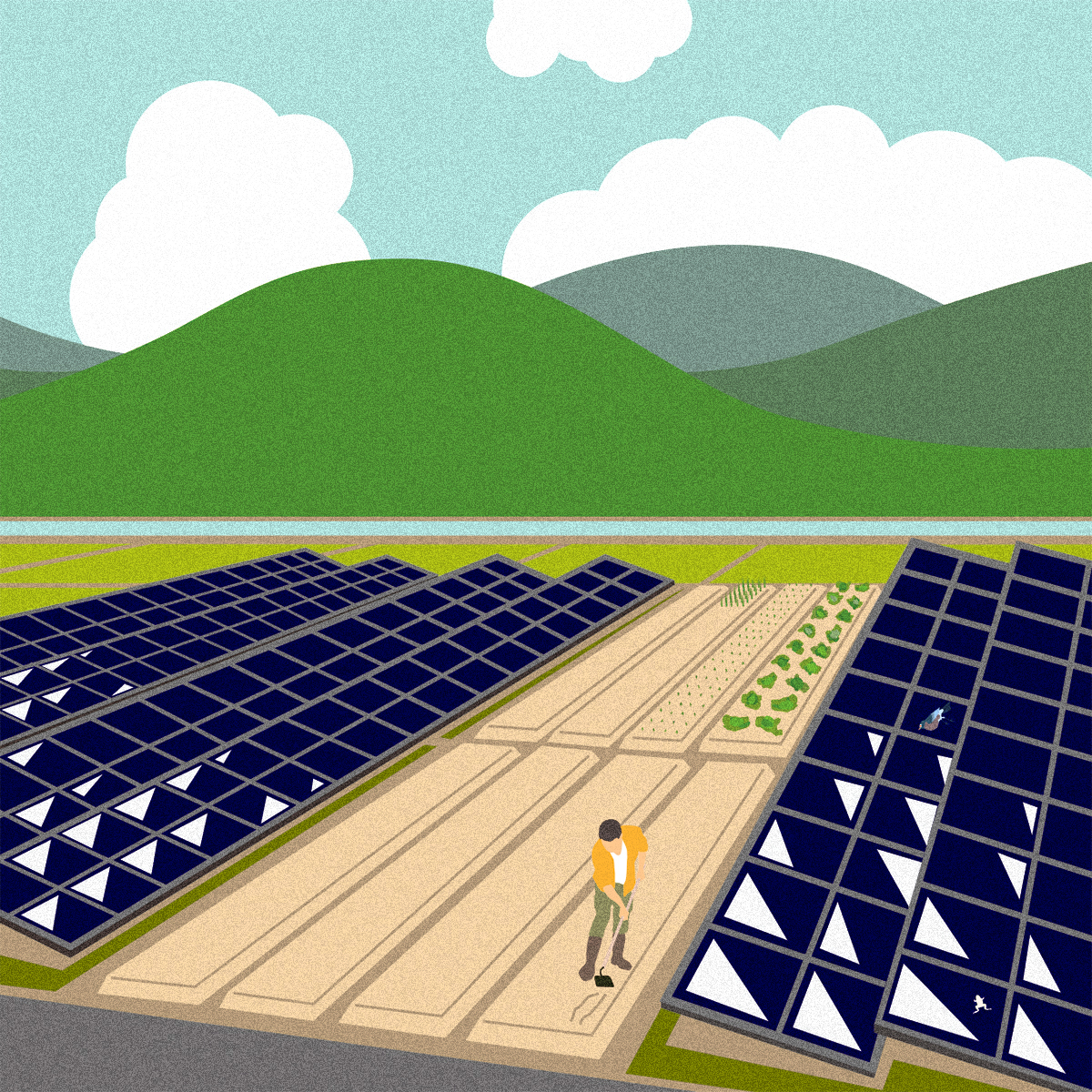 人目につかないようにと、山の中のメガソーラーだけじゃない、田苑風景にも広がるソーラーパネル。渡り…